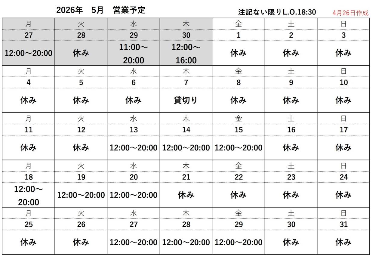 営業カレンダー